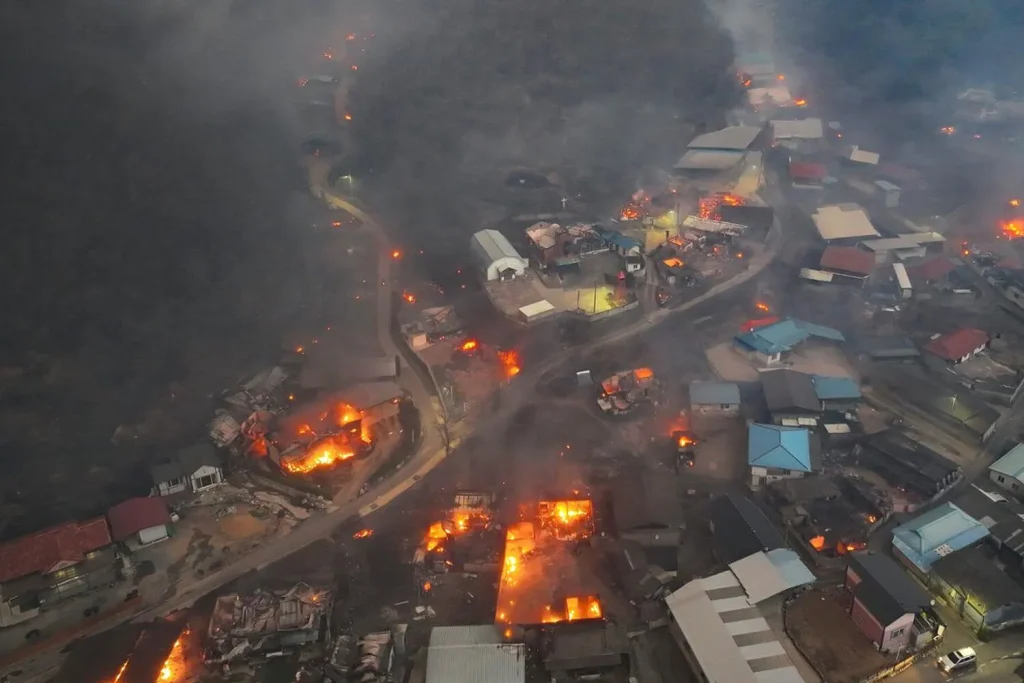 एजेन्सी, दक्षिण कोरियाको सबैभन्दा खराबमध्येको तीव्र हावाका कारण फैलिएको डढेलोले देशको दक्षिणी क्षेत्रलाई ध्वस्त पारेको छ।