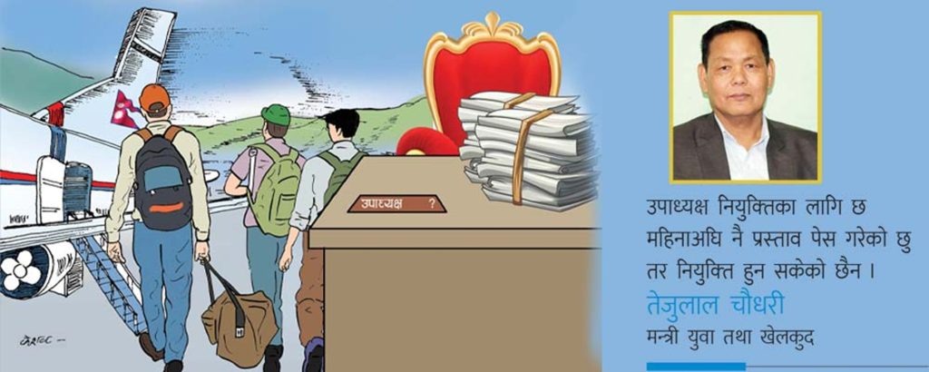 युवा तथा खेलकुद मन्त्रालयले पाँच महिनाअघि उपाध्यक्ष नियुक्तिका लागि कमिटी गरी सिफारिस पनि गरिसकेको हो ।