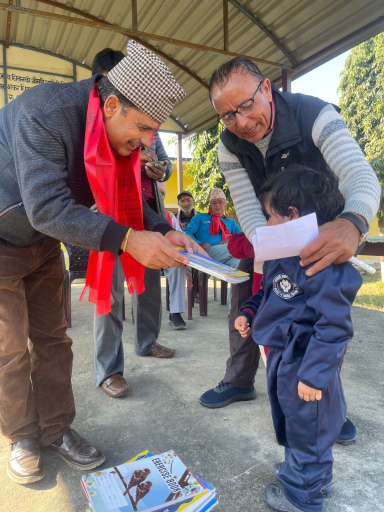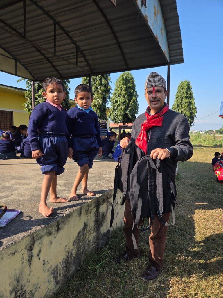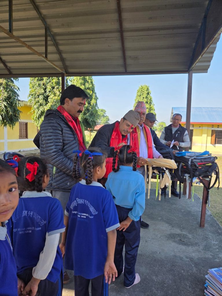 प्रमुख अतिथि समाजसेवी मुक्तिप्रसाद सापकोटाको प्रमुख आतिथ्यतामा भएको कार्यक्रममा भरतपुर २१ कञ्चन बस्तिमा रहेको राष्टिय आधारभूत बिद्यालयका ८५ जना विद्यार्थीलाई स्कूल ब्याग तथा स्टेशनरी समान बितरण गरिएको हो ।