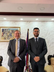 काठमाडौं, २ वैशाख । शिक्षा, विज्ञान तथा प्रविधिमन्त्री सस्मित पोखलेलसँग नेपालका लागि संयुक्त अधिराज्य (बेलायत) का राजदूत रब फेनले बुधबार शिष्टाचार भेटवार्ता गर्नुभएको छ ।
