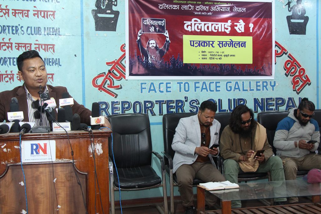 मंगलबार राजधानीमा पत्रकार सम्मेलन गर्दै अभियानका अभियन्ताहरुले राज्यका हरेक तह र तप्कामा दलित समुदायको समानुपातिक प्रतिनिधित्व हुनुपर्नेमा त्यसो हुन नसकेको बताएका हुन् ।
