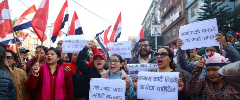 कांग्रेसको मान्यता गगनलाई दिने आयोगको निर्णयविरुद्ध माइतीघरमा प्रदर्शन