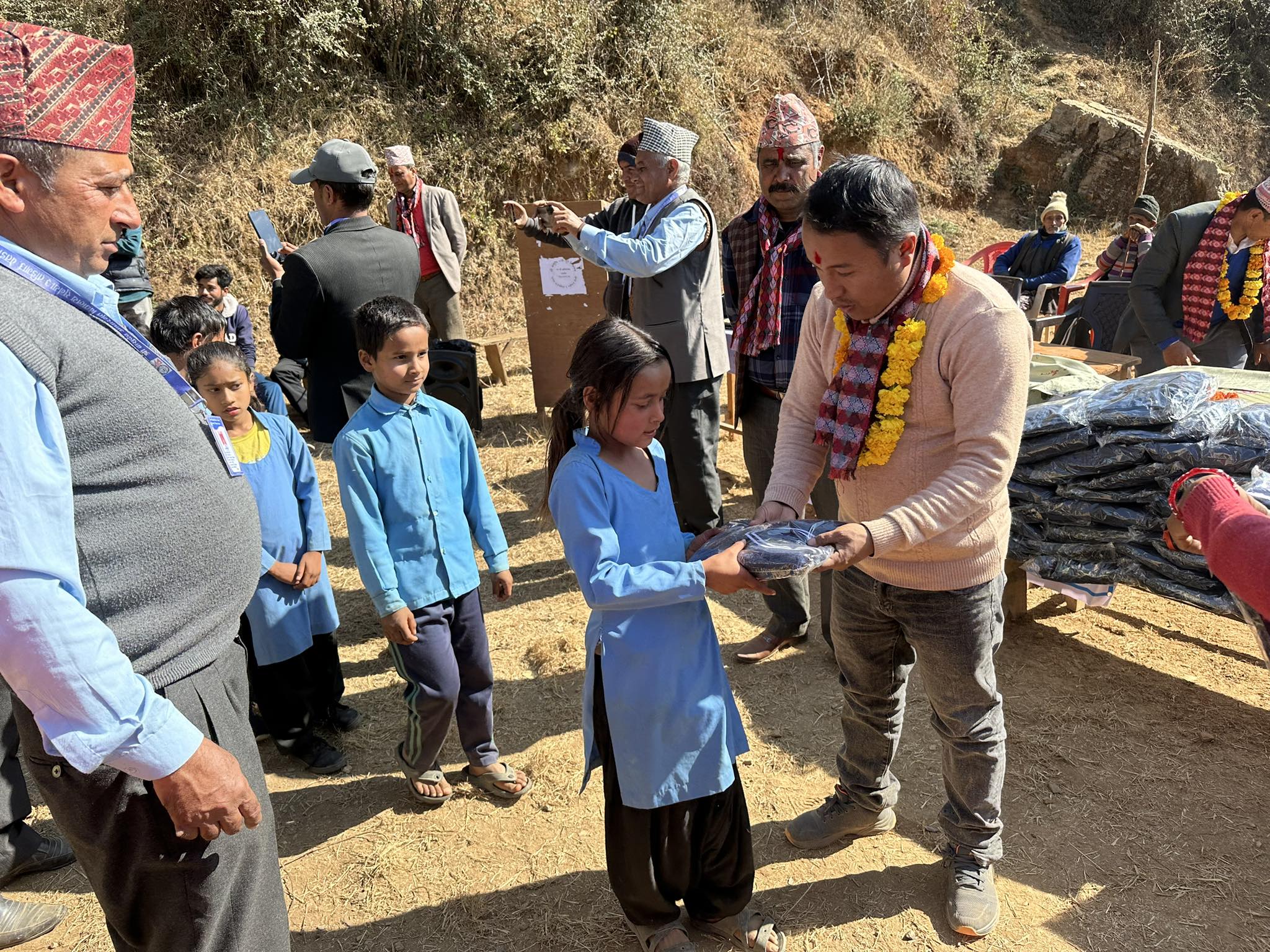 बैतडीको सिगास गाउँपालिकाका–१ स्थित भुमिराज स्वामी आधारभूत विद्यालय, वडा नं २ को कैलपाल आधारभूत विद्यालय, पाटन नगरपालिका–१० को सरस्वती मावि र ब्रहम आधारभूत विद्यालय तथा सुर्नया गाउँपालिका–३को बाशुदेव आधारभूत विद्यालयमा अध्यायनरत बालबालिका र सेवा क्षेत्रभित्रका ज्येष्ठ नागरिकहरुलाई न्यानो लुगा स्वीटर र ज्याकेट वितरण गरिएको हो ।